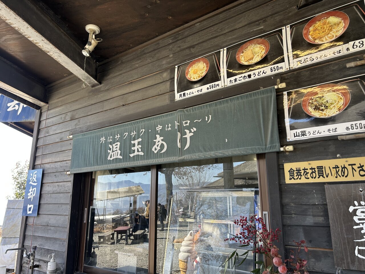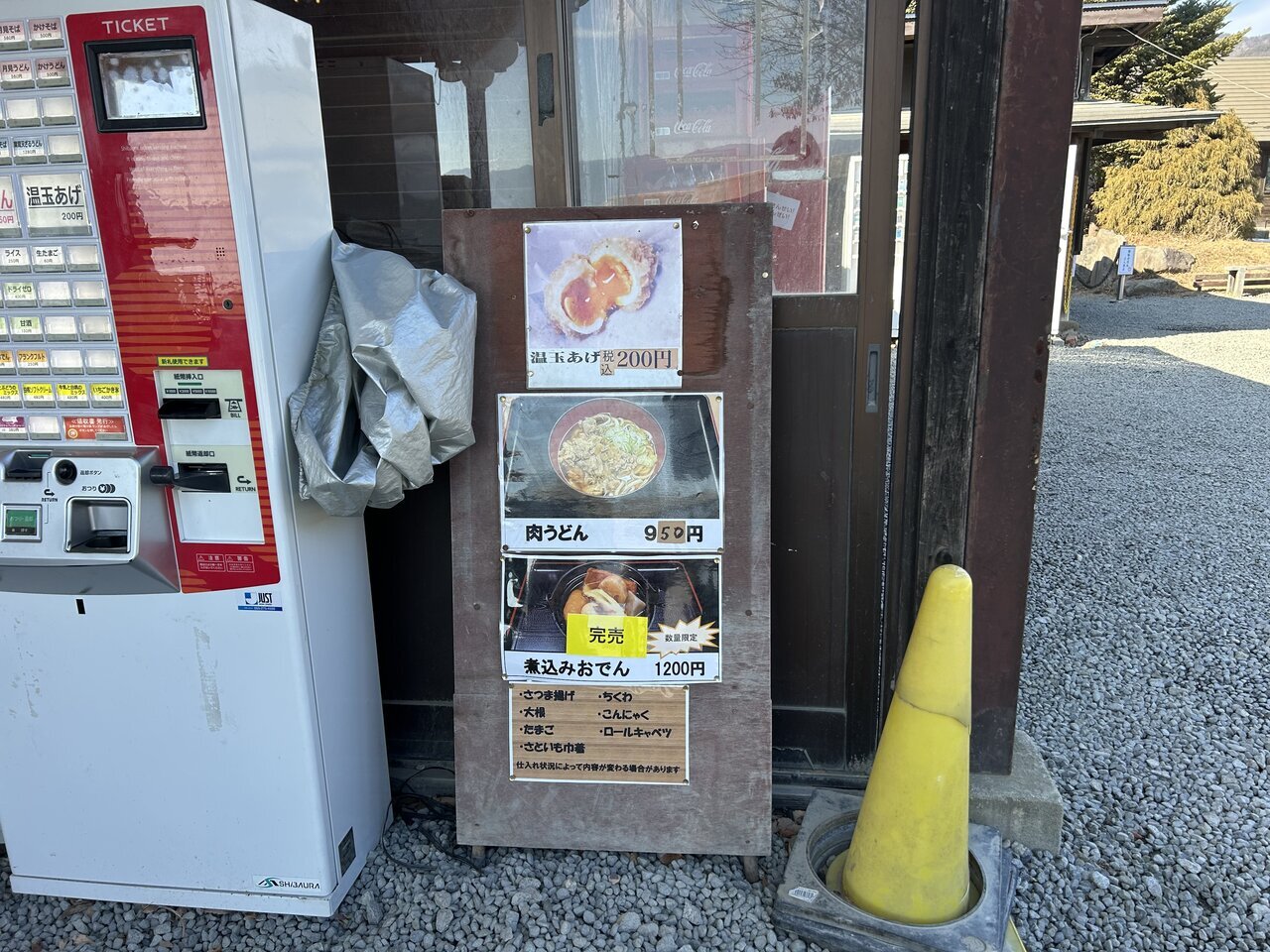 As expected, it was prominently featured at the top of the signboard. Below that, the recommended dish was meat udon. Today, I decided to have these two dishes. After purchasing the meal ticket, I sat on a nearby bench, waiting in that style.