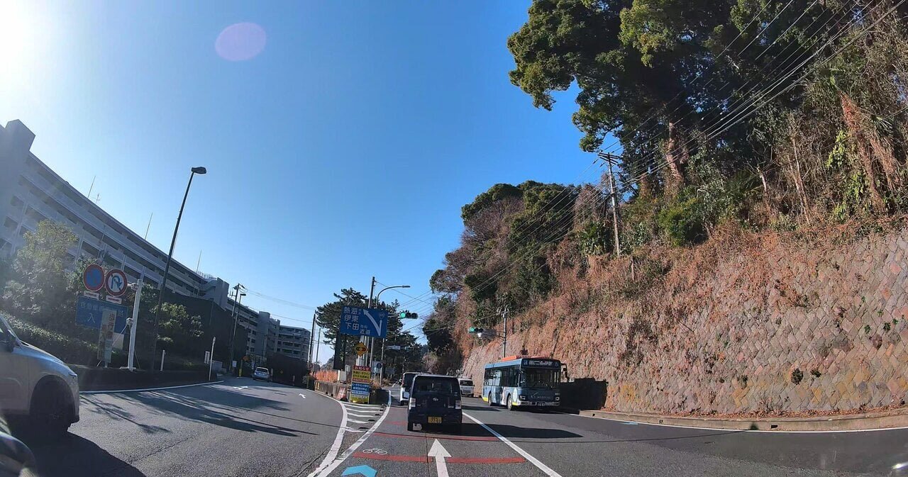 We make a U-turn from the left side of the beach line to head towards National Route 135, which has an upward slope. The starting point for this filming is from here, and if coming from the Yugawara direction, it should be a similar route considering efficiency.