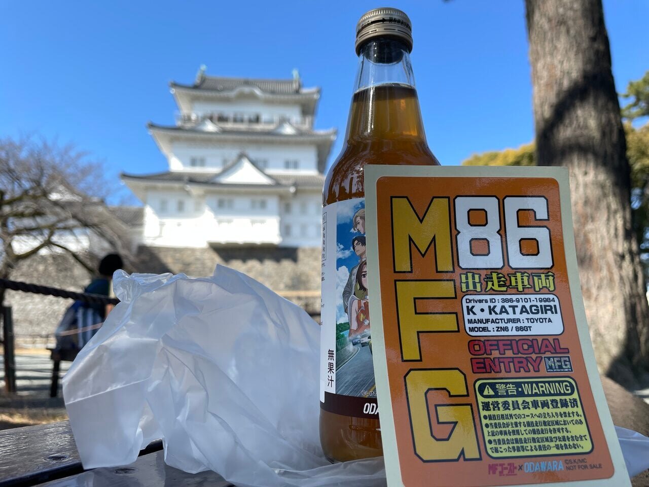 I purchased an MF Ghost Craft Cola (540 yen) and got the sticker I had been longing for! The craft cola has a genuine taste with cloves and cinnamon and is delicious. I was also able to visit the sacred site, Odawara Castle, which made for a great conclusion to my trip. With the excitement of the MF Ghost still fresh, why not run through the holy site? Over!