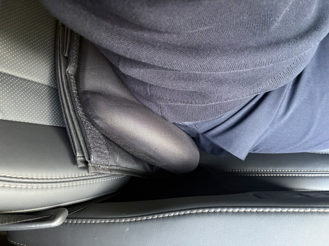 The back cushion feels just right. I realized that the value of this cushion + box lies in being a "state where you can always keep it in the car," rather than being a "tool that you only pull out when you use it."