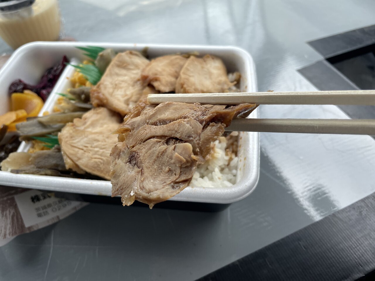 The sweet and spicy seasoned chicken meat has just the right bounce, offering a refreshing yet deep flavor. Oku-Kuji shamo is raised for about three times longer than typical chickens (broilers), characterized by its low fat content and strong umami. It truly reflects that characteristic with a finish that makes you want to eat it again and again. The convenient bento that can be enjoyed anywhere is appealing for drivers and riders enjoying a light journey.