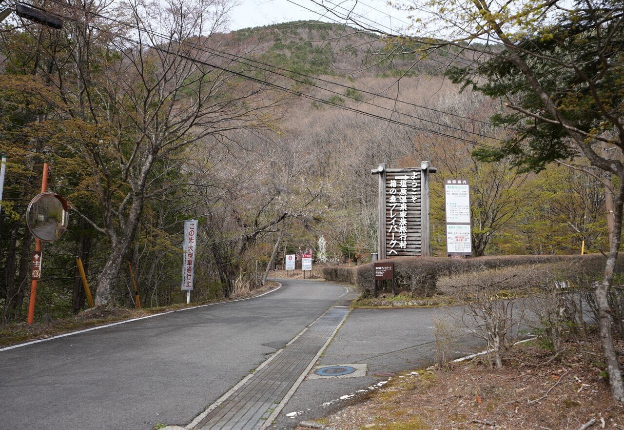 Arrived at the dead-end road closure gate. It seems there is an entrance to a hiking course nearby, but beyond the gate is an area where even pedestrians are prohibited from entering.