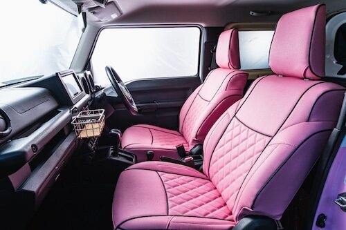 With a rich variety of colors, the popular Jimny makes you want to customize the interior too! For those people, a colorful seat cover has been discovered. It's easy to install since it's only for the front seats. This is a challenge for your first customization!