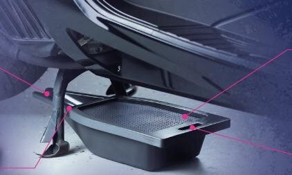What can be surprisingly difficult with a bike on a center stand is changing the oil. The stand gets in the way, making it hard to drain the oil, and it can dirty the parking spot... What caught my attention is the oil drain pan that allows easy draining even with a center stand. This could greatly reduce the time for self-maintenance.