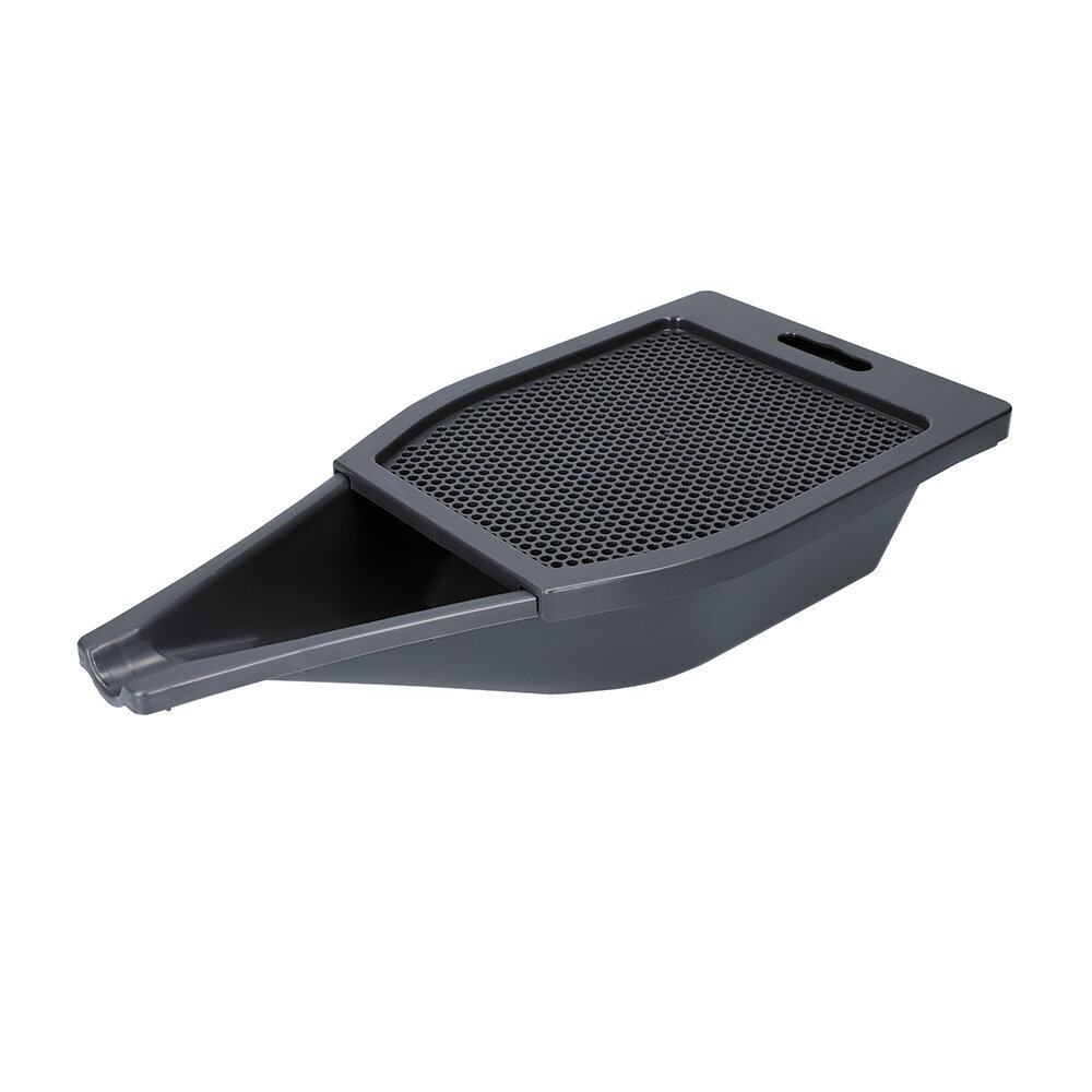 For oil changes in vehicles under 125cc! A "skillful" drain pan with a mesh cover and scale