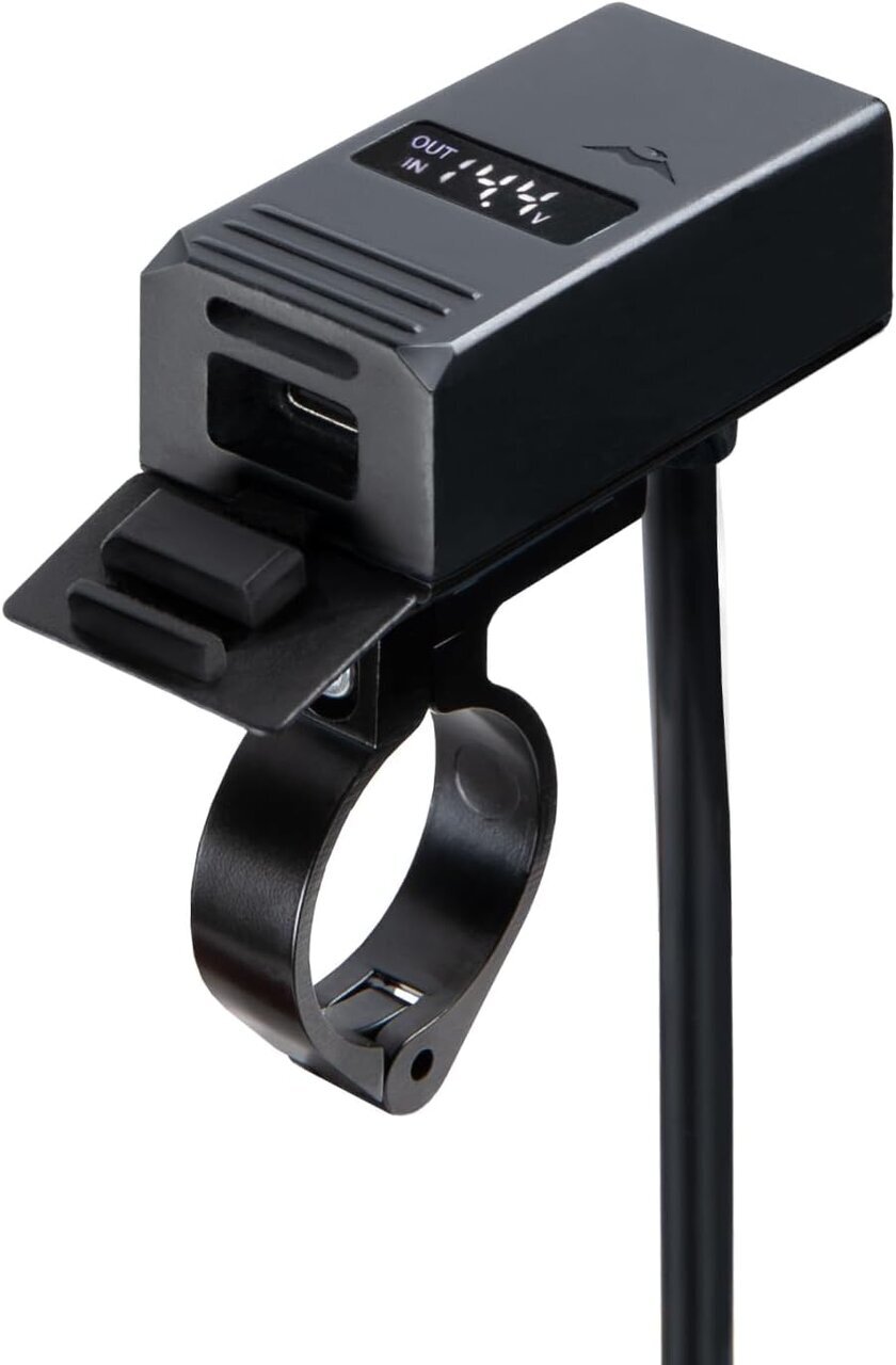 Its compact size is necessary and sufficient, so the area around the handle is neat. You won't feel any impact on the design of your beloved vehicle. It features a shape that attaches to the handle with an aluminum clamp, blending naturally into your hand. It also comes with a display that shows the charging voltage and battery voltage, which is a plus.