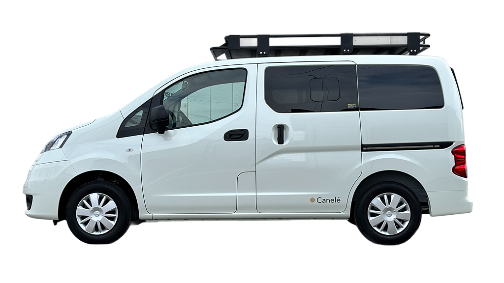 based on Nissan's "NV200 Vanette," the compact camping car "Canelé" series. It's easy to handle and does not cause stress even when driving in the city. The interior is spaciously designed, making it a perfect blend of the advantages of light camping cars and van conversions.