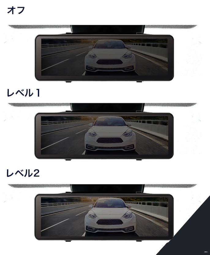 The mirror features a touch panel for intuitive operation. Additionally, the screen size can be adjusted in three stages: 1, 1.5, and 2 times, making it easier to gauge the distance from following vehicles.