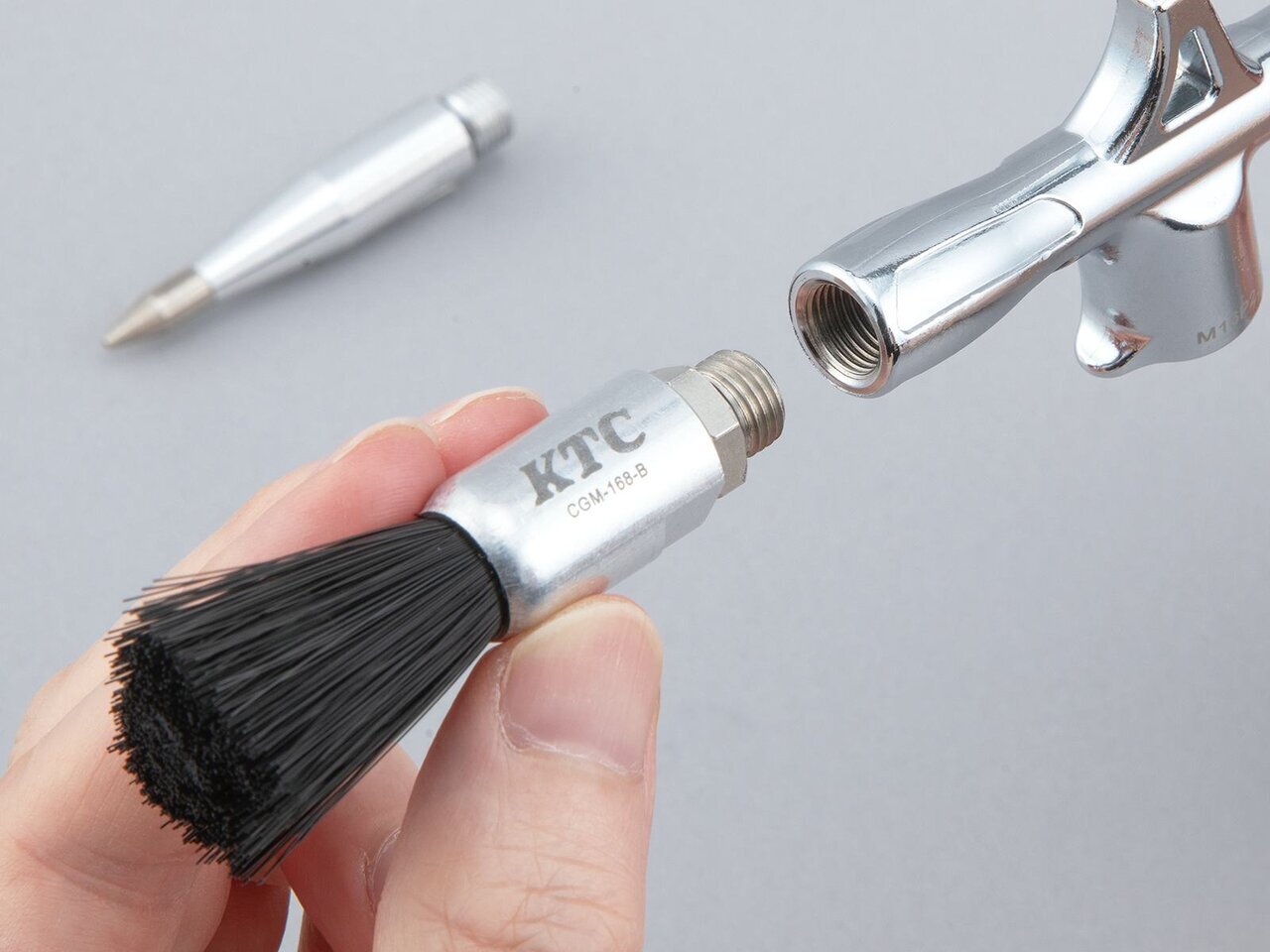 Greasing is essential for maintaining your beloved car, but grease can be black and sticky when it gets on your hands. Regular hand soap doesn't remove grease, and washing hands with strong detergents can irritate the skin, which has been a concern for the author. During such times, the KTC "Mini Grease Gun Dedicated Brush" was discovered. If you apply grease with this brush to the uneven parts of the car, such as chains, bearings, and hinges, you can avoid getting your hands dirty.