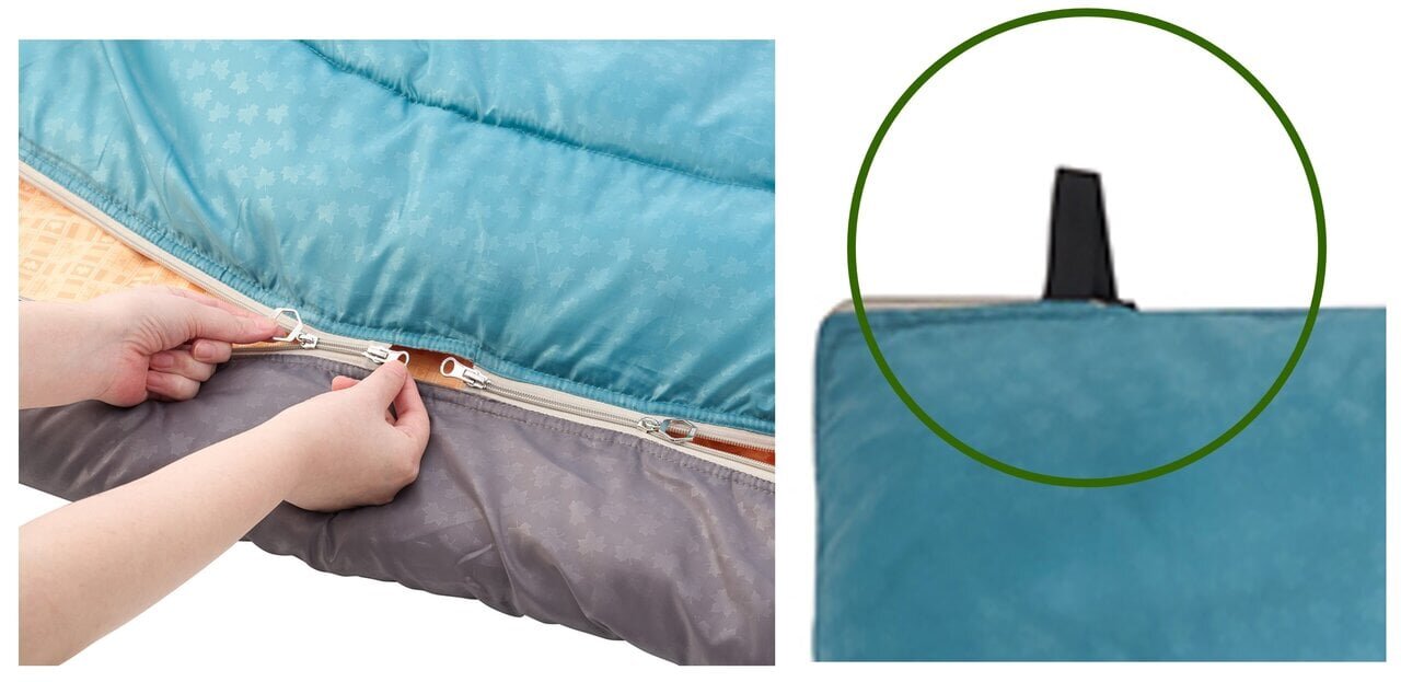 In the connected double-size state, parents and children can comfortably sleep side by side. In complete darkness at camp, there are times when one might feel uneasy, but you can sleep peacefully next to each other. When separated, it becomes two sleeping bags, making it easy to continue using them for a long time as the child grows.