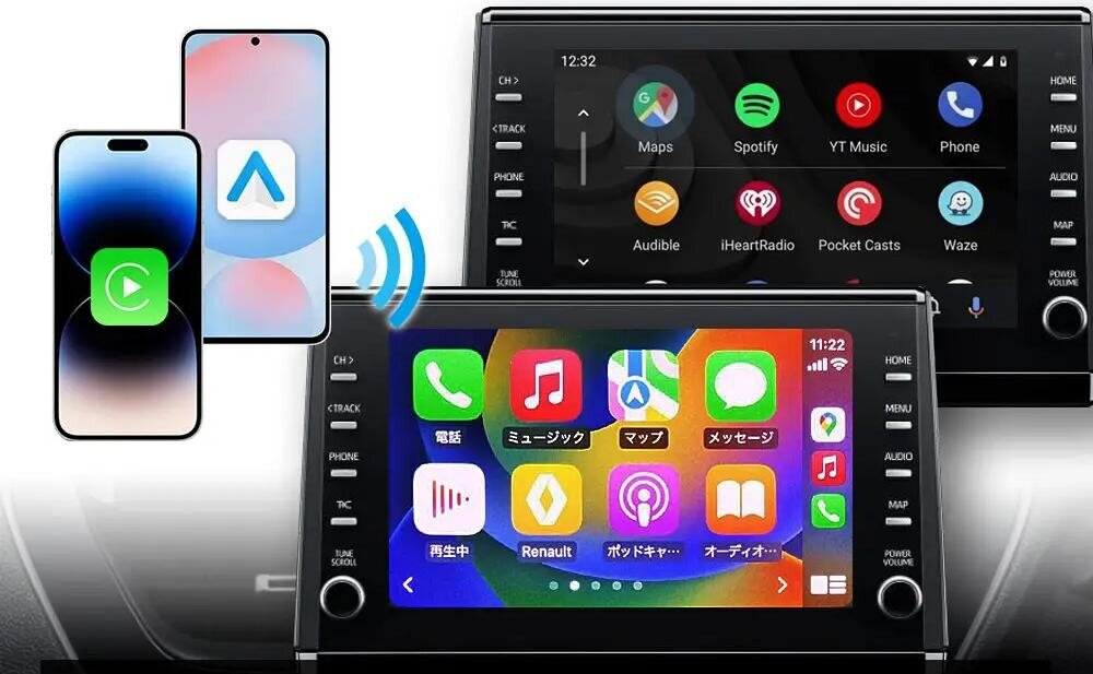 System memory is 4GB, with 32GB of built-in storage. The processing speed is significantly improved compared to previous products. The genuine Apple CarPlay and Android Auto, which only supported wired connections, can now connect wirelessly. You can enjoy a stress-free experience, liberated from the hassle of looking for cords or smartphones to connect.