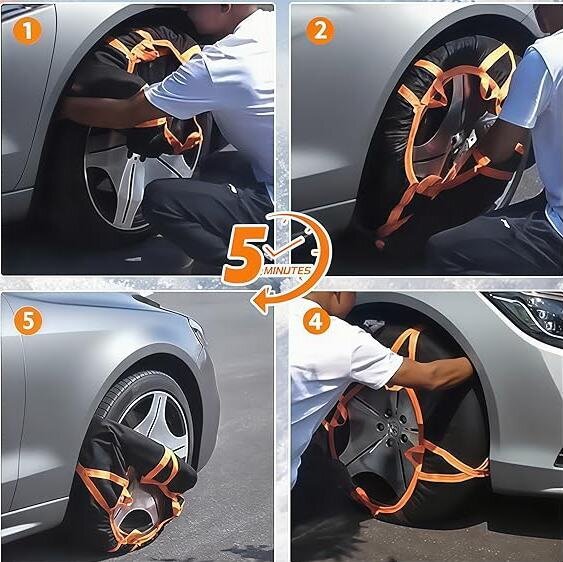 【Fabric Tire Chains】Easy installation without the need for a jack! City drivers should definitely carry these in their vehicles.