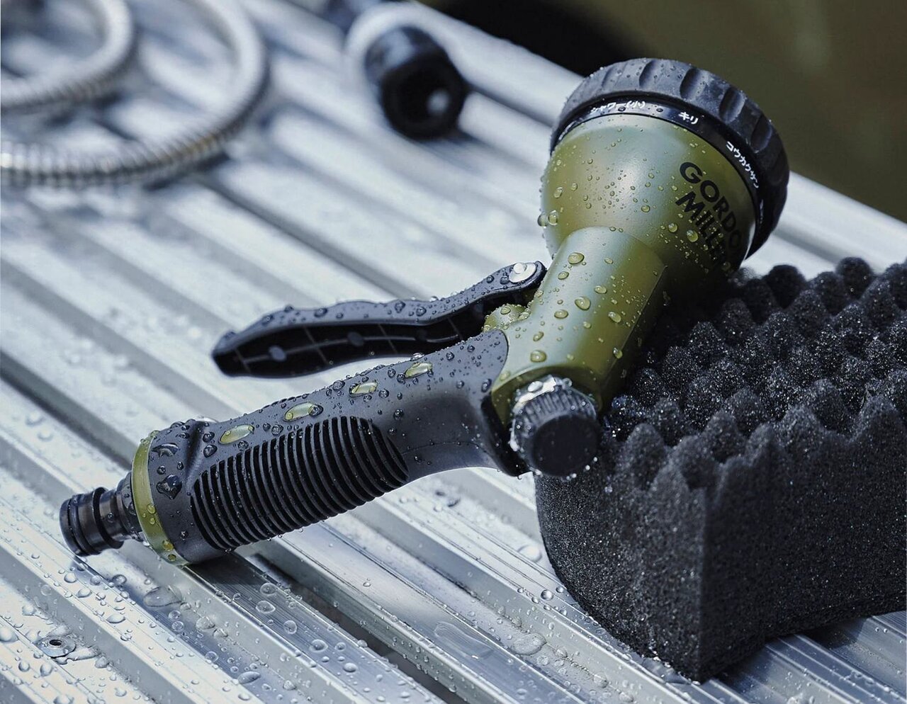 Equipped with 9 types of spray modes. You can switch between multiple spray nozzles such as straight jet, mist, and shower by turning the lever, allowing for thorough dirt removal during car washing. There is also a water volume adjustment dial at your fingertips, so you can easily control the amount and force of water coming from the nozzle.