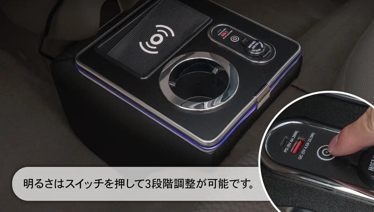 The strength of this console box is that it doesn't just end as regular storage. By simply plugging it into the cigarette socket, the car's power supply is consolidated here. The top of the box is equipped with USB Type-A and Type-C ports, making smartphone charging smooth. Additionally, there are models that support wireless charging in the lineup. It seems that the stress of tangled cables in the car can also be alleviated.