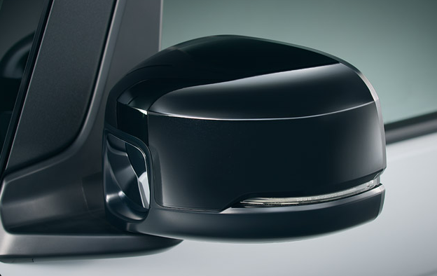 The electrically retractable remote control door mirrors are finished in Crystal Black Pearl paint. Even in black, it has a different nuance.