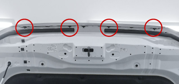 Next, use a 10mm wrench to remove the nuts in four locations on the underside of the hood.