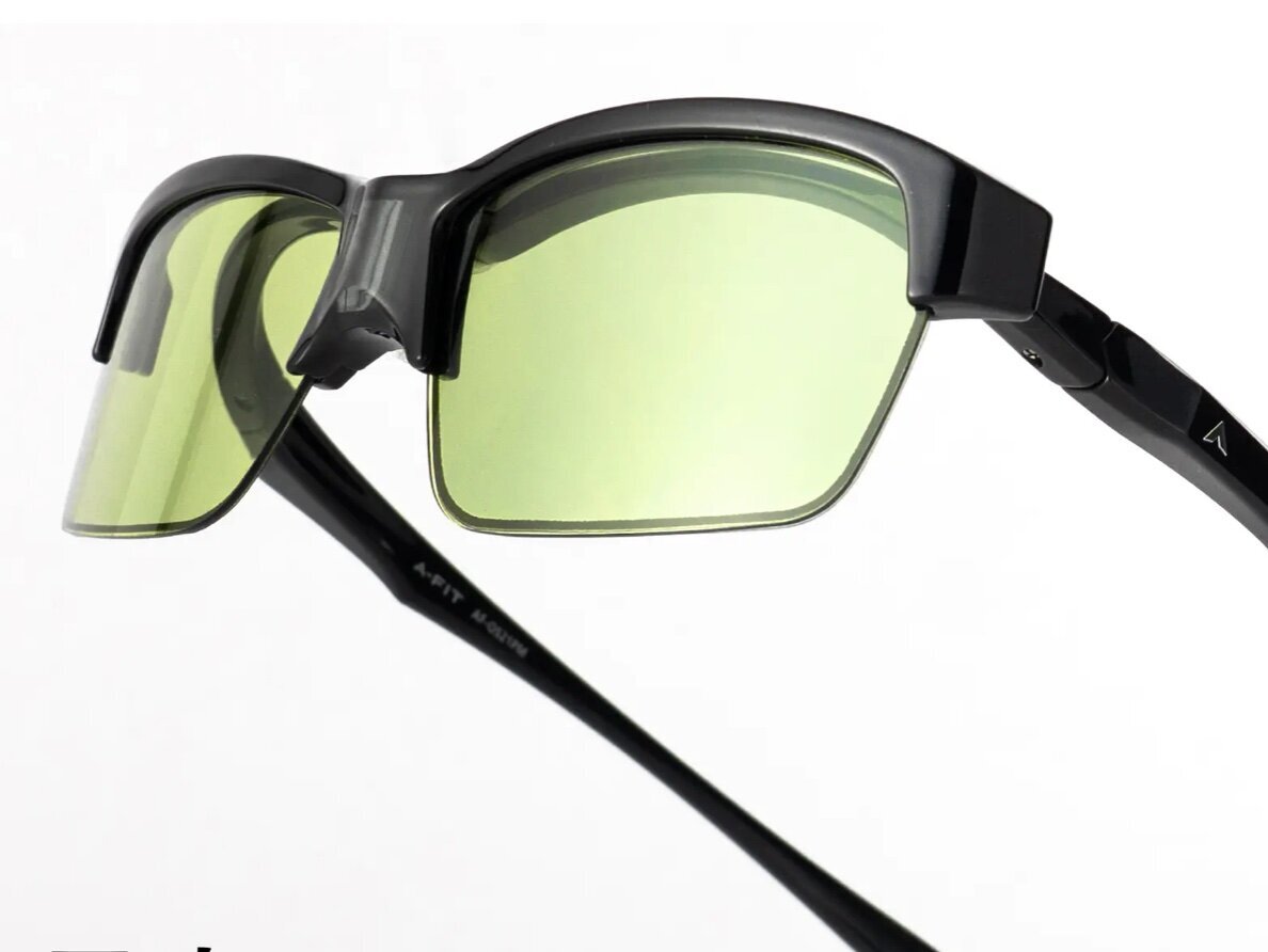 The "A-FIT FLASH" over-sunglasses enable momentary dimming thanks to their solar function. No charging or batteries required, the lens darkness changes instantly according to brightness and darkness.