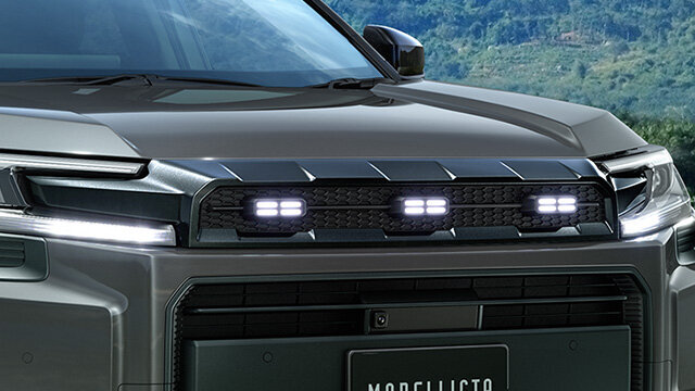 The "Front Grill Illumination" can transform the appearance to a suitable face for off-road use by arranging three LED markers in a wide direction.