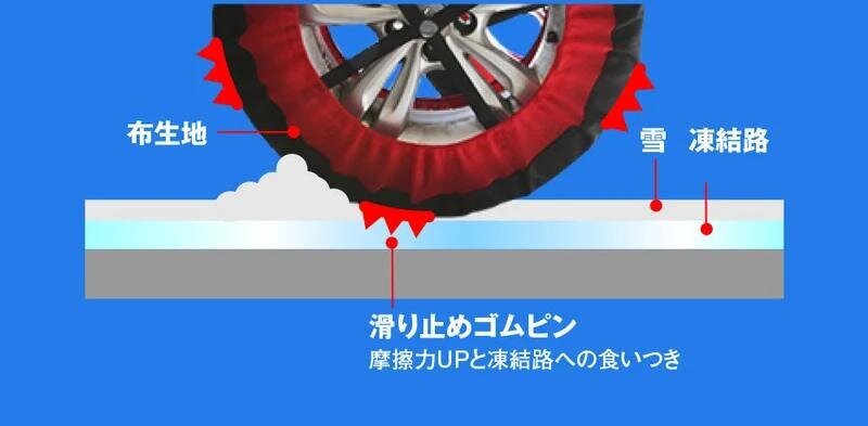 【Fabric Tire Chains】Be careful of snow during the latter half of the holiday! With the powerful grip of “rubber pins,” even icy roads are not scary.