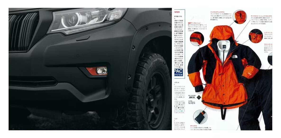The "LAND CRUISER PRADO 'NEWSCAPE'" is a vehicle that resonates with those who want to choose their car in line with their outdoor gear selection. With the story of THE NORTH FACE and Spiber embedded in the Prado, it seems you can spend time loading camping gear and cruising through the city with a bit of pride.