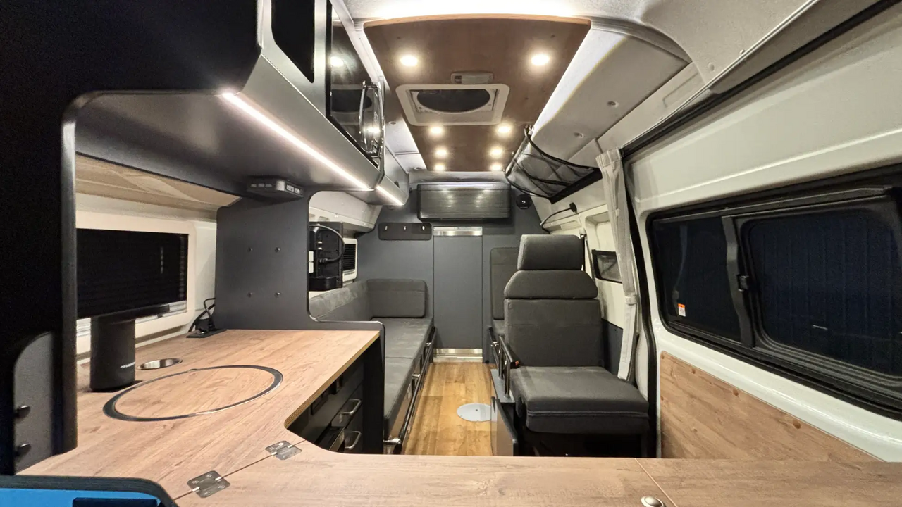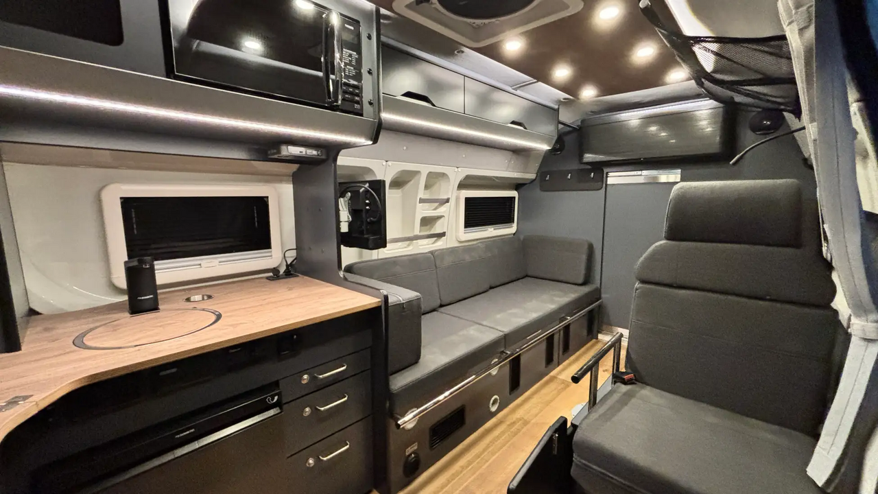 Since it’s a camper van, you would want to pay attention to the kitchen and storage. The "RICORSO 7" comes standard with a refrigerator equipped with a 58L freezer in the galley area, allowing you to stock food and drinks properly. Features like a sink with a lid that can be used as a workbench when not in use and the arrangement of a microwave powered by a 2000W inverter are key points that consider the flow of cooking and cleaning.