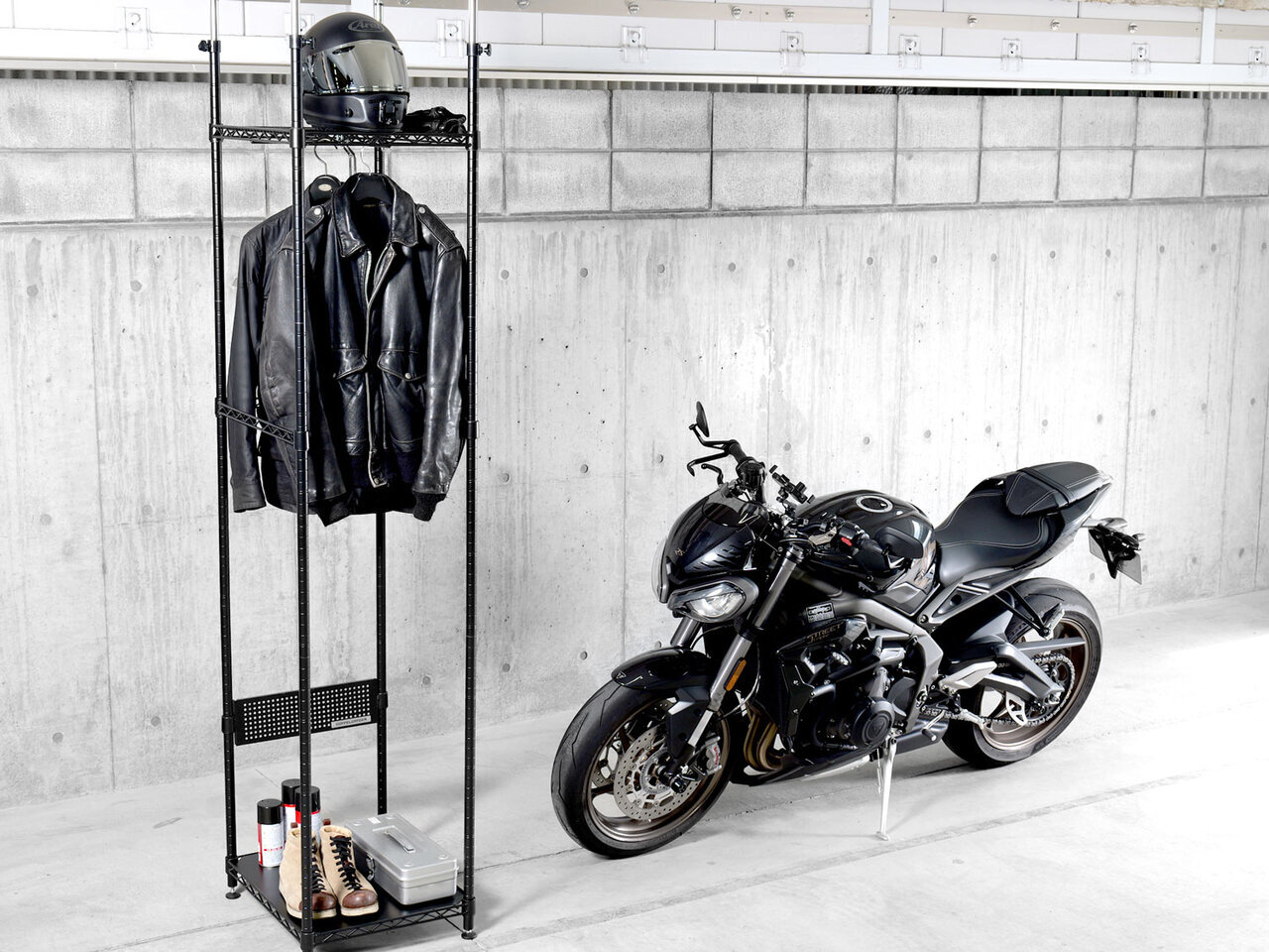 【Bicycle】 Fixed vertically with an 8-point support rack! Can also be used for storing motorcycle gear.