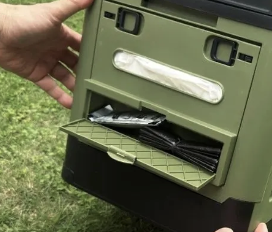 For typical portable toilets, you must manage supplies like toilet paper and absorbent powder separately, which can lead to panic in emergencies... In contrast, "UNISTOOL" smartly stores supplies like paper, absorbent powder, and disposal bags inside the unit, so you can use it quickly when needed.