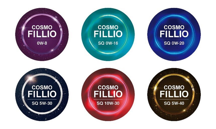 Product names: COSMO FILLIO 0W-8, COSMO FILLIO SQ 0W-16, COSMO FILLIO SQ 0W-20, COSMO FILLIO SQ 5W-30, COSMO FILLIO SQ 10W-30, COSMO FILLIO SQ 5W-40, COSMO FILLIO SQ/CF BASIC 5W-30