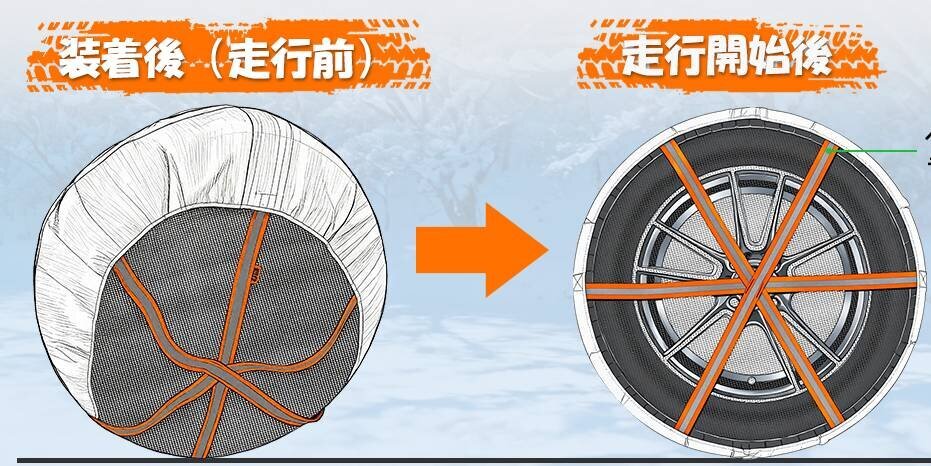 "Fabric tire chains" that can be put on easily like socks