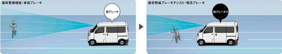 Equipped with the latest preventive safety function "Smart Assist", it reliably detects bicycles and oncoming cars as well as pedestrians while crossing. Additionally, the "e-Atore" has a focus on quality that fits not only for commercial use but also for daily use and outdoor scenes on weekends. It seems to completely renew the image of commercial vehicles.