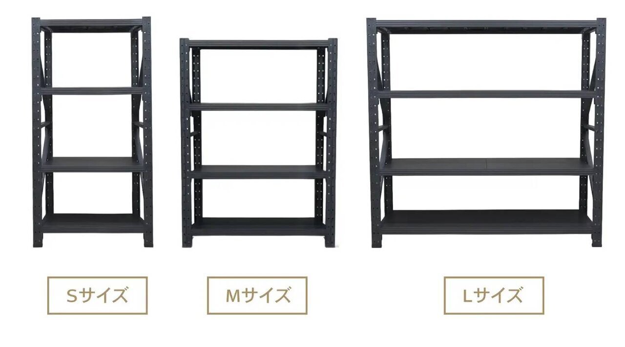 Weight capacity: S: 100kg per shelf, 400kg total; M: 100kg per shelf, 400kg total; L: 200kg per shelf, 800kg total