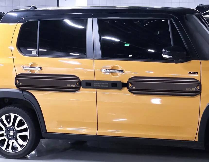 That's where "Punch Zero," which reduces the risk of door dings, comes in handy. It might seem a bit large... but it's not a custom that modifies the car body; it's an external device that you attach only when parking (if needed). You can use it without worrying about its impact on vehicle inspections or warranties, and it doesn't affect the appearance during regular driving.