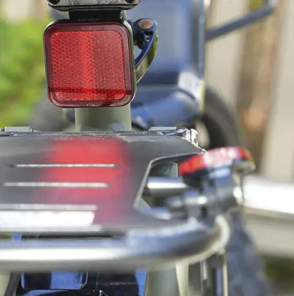 Of course, it also fulfills its role as a reflector. The reflector uses reflective material that complies with the ISO6742 standard. It accurately reflects lights from behind, making it easier to indicate the bicycle's presence even on dark roads. Additionally, it is equipped with an angle adjustment function, allowing you to set the reflective surface in the correct position according to the type of vehicle, so it can be mounted in the optimal position on any bicycle.