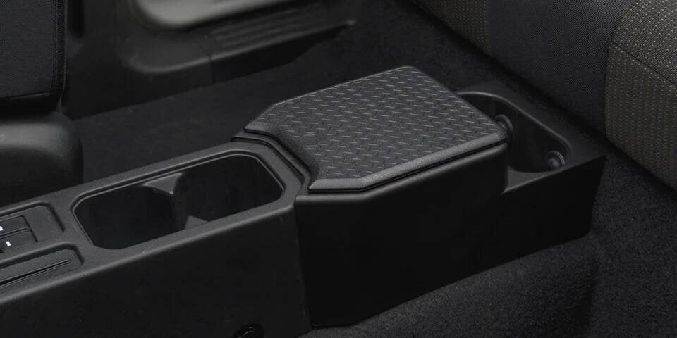 The long-awaited 5-door model "Jimny Nomad" for family drives! Just when I thought it was perfect, there's no drink holder in the back seat, so what to do about drinks...? That's when I found the "Rear Console Box" exclusive to the "Jimny Nomad" 5-door model. It's a convenient item with a drink holder and a storage compartment, which likely enhances the comfort level inside the car significantly.