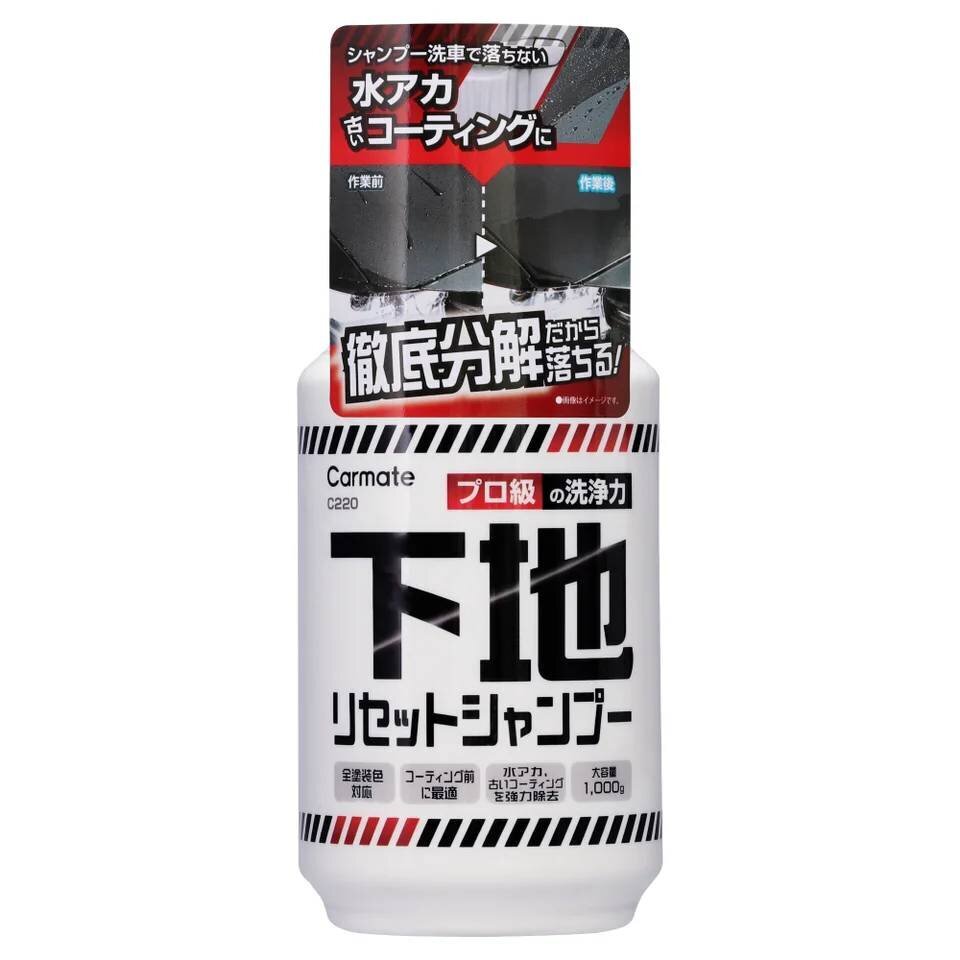 The first one I want to use is the "Base Reset Shampoo," which powerfully breaks down stubborn water stains and old coatings. It is alkaline and breaks down water stains and old coatings, while chelating agents absorb the metal ions that cause water stains. With a triad approach using ultra-fine particle powder to thoroughly remove dirt, it brings your beloved car back to a bare state.