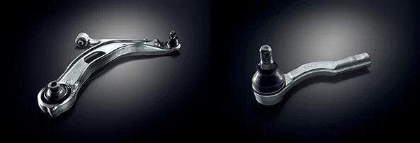 Main Contents: Lower arm with pillow ball bush, curved shape tie rod end, optimization of suspension fastening strength