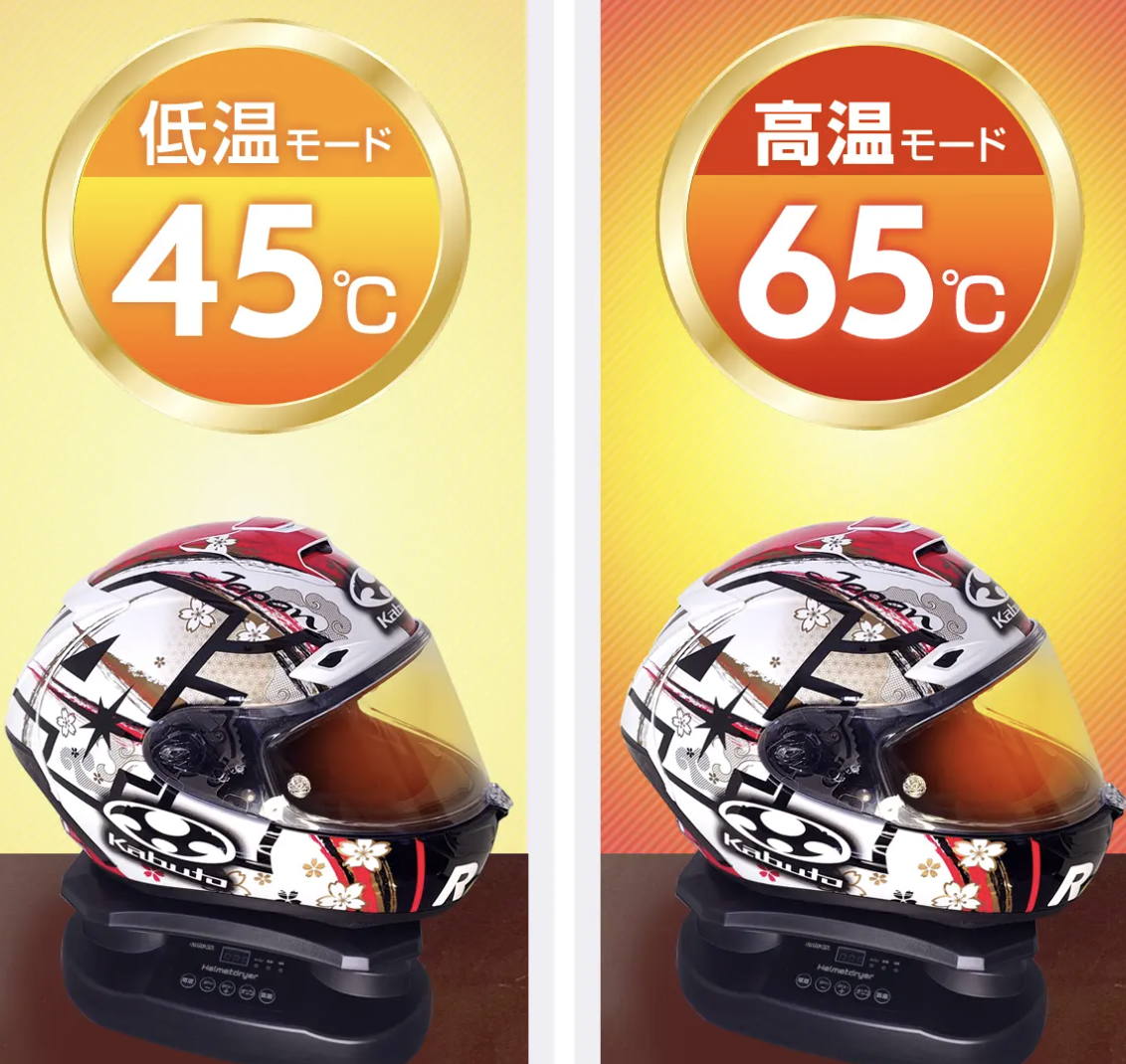 The drying air can be switched between low and high temperatures. By choosing the appropriate setting according to the condition and material of the helmet, you can gently and carefully care for delicate interiors without causing damage.