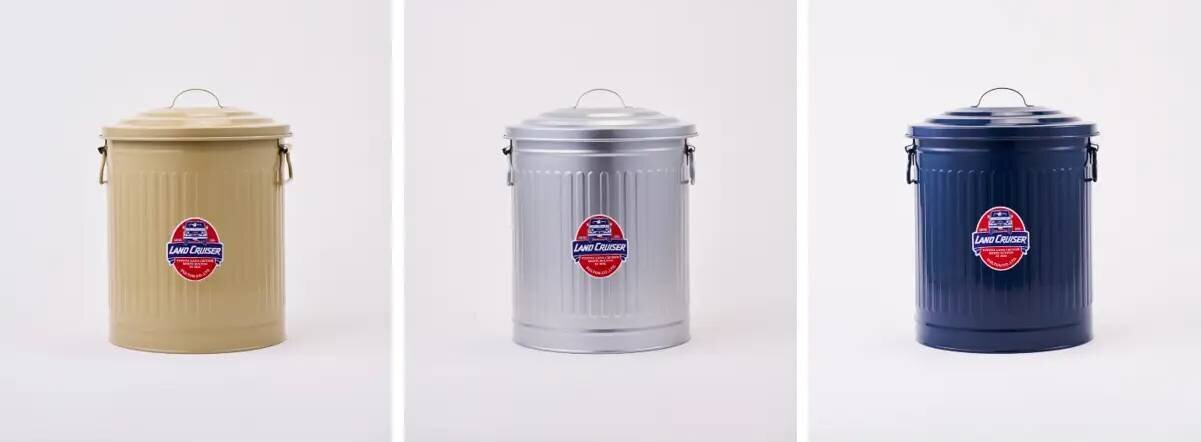 The "Baby Garbage Can LC Edition," a small palm-sized trash can, joins the beloved garbage can series at DULTON. This rugged and pop design is specially made for the Land Cruiser and features a striking sticker design of "70 WAGON."