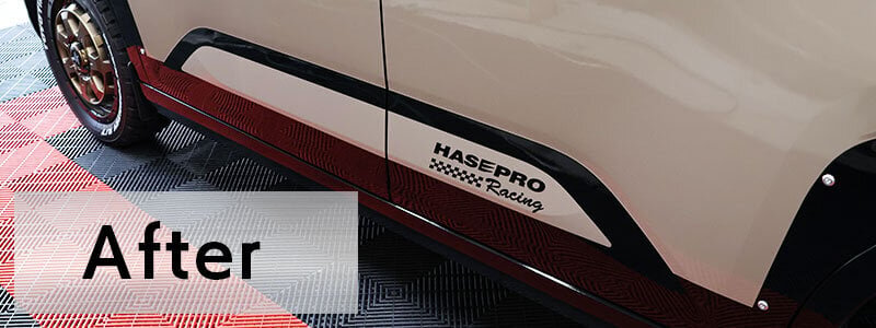 The "Door Side Panel Garnish" is a painter's sheet that maximizes Hase Pro's high coloring technology and know-how, reproducing a color close to the genuine one of the popular Mitsubishi Delica Mini. It enhances the side view with a finish that is on par with the original color, making it more powerful and stylish.