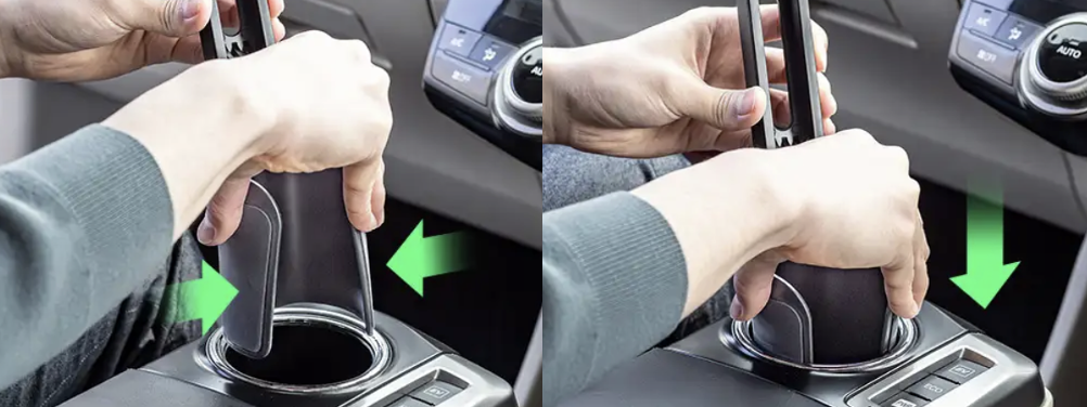Not only functionality, but also thorough consideration for wide compatibility. The installation method is simply to insert it into an existing cup holder. It uses cushioning material on the sides, allowing for smooth installation. By the way, it is compatible with cup holders up to 10 cm in diameter, so it works for domestic cars, imported cars, SUVs, and compact cars.