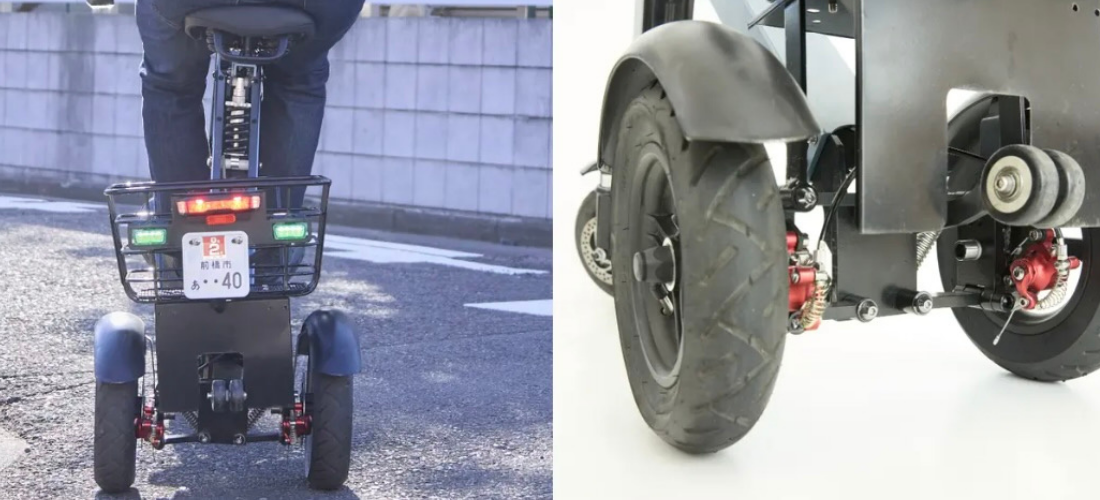Notable is the swing mechanism adopted for the rear wheel. When the body leans into a curve, the rear wheel bends left and right, allowing one wheel to remain in contact with the ground without lifting. This unique stability, which is not found in two-wheelers, is a strength of the three-wheeled design, reducing wobbling during low-speed travel. The 350W motor can handle inclines of up to 22%.