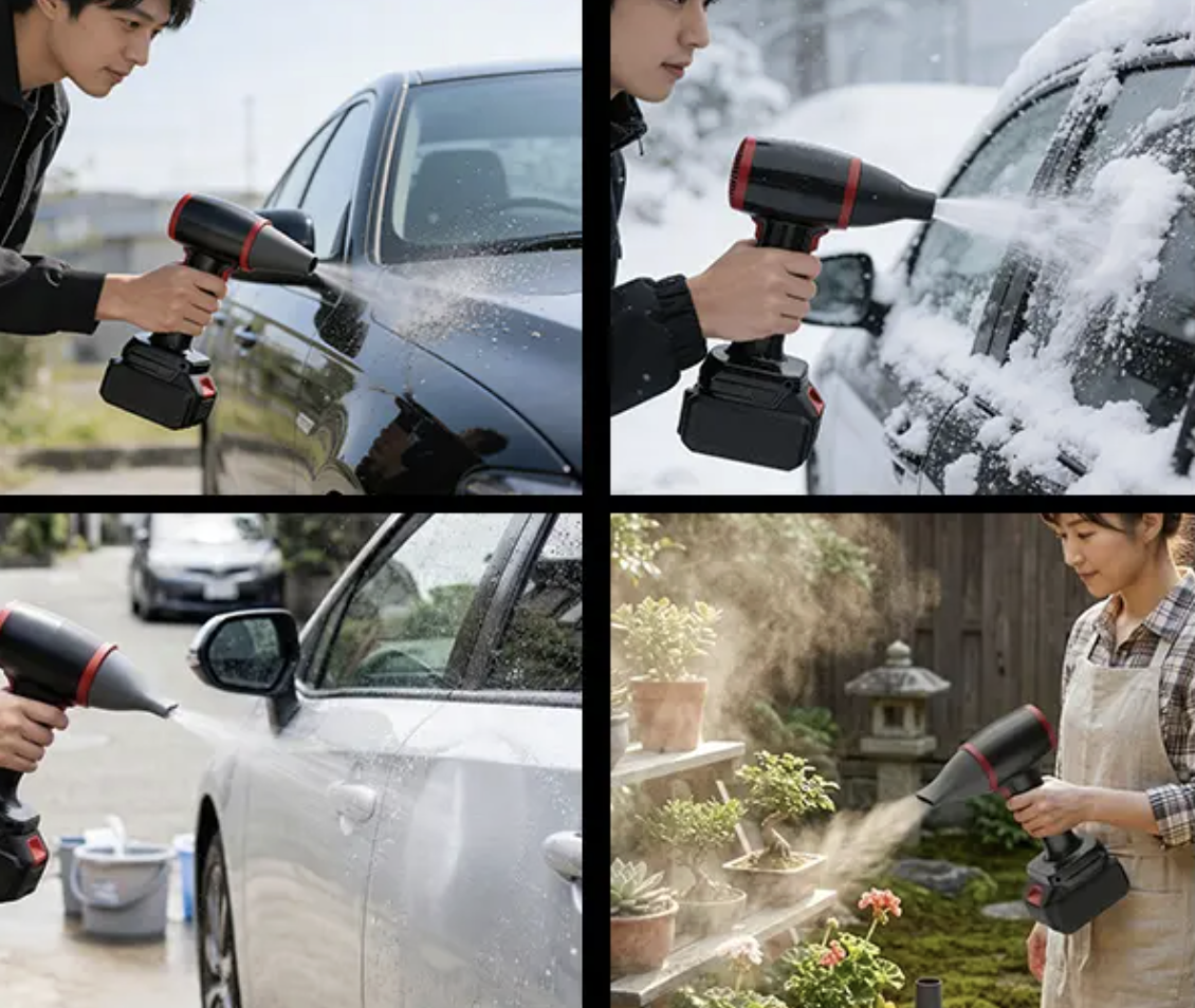The great strength of this 2-in-1 blower is its powerful airflow of up to 200 km/h. It has the power to blow away sand and dust stuck to the ground, as well as water droplets left on the vehicle, making it easy to clean even tiny debris that is difficult to sweep away with just air.