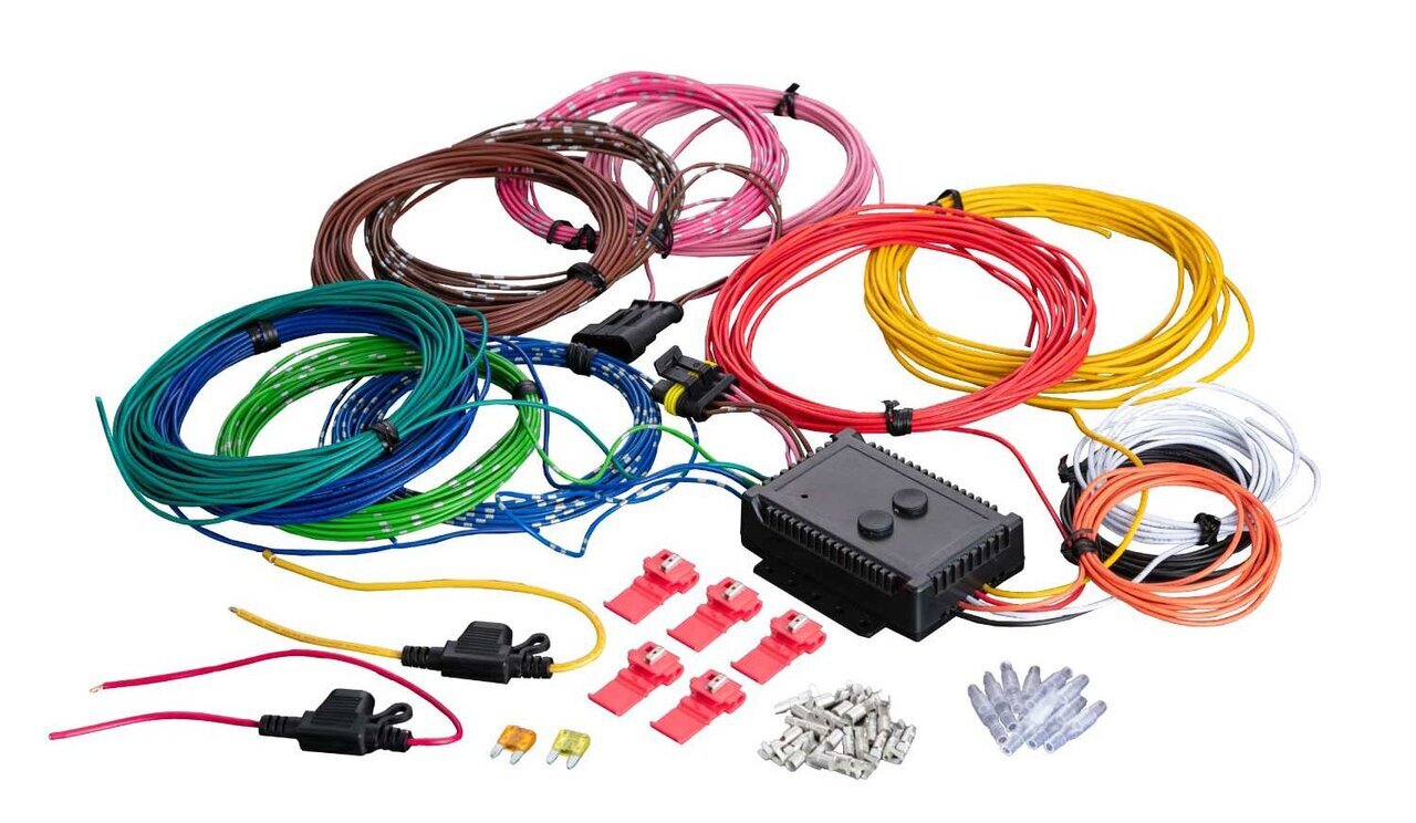 The kit includes a dedicated unit and all necessary wiring to link the keyless operation for locking and unlocking. Additionally, it comes with a waterproof rubber cap to protect the dial adjustment area, showcasing a comprehensive offering.