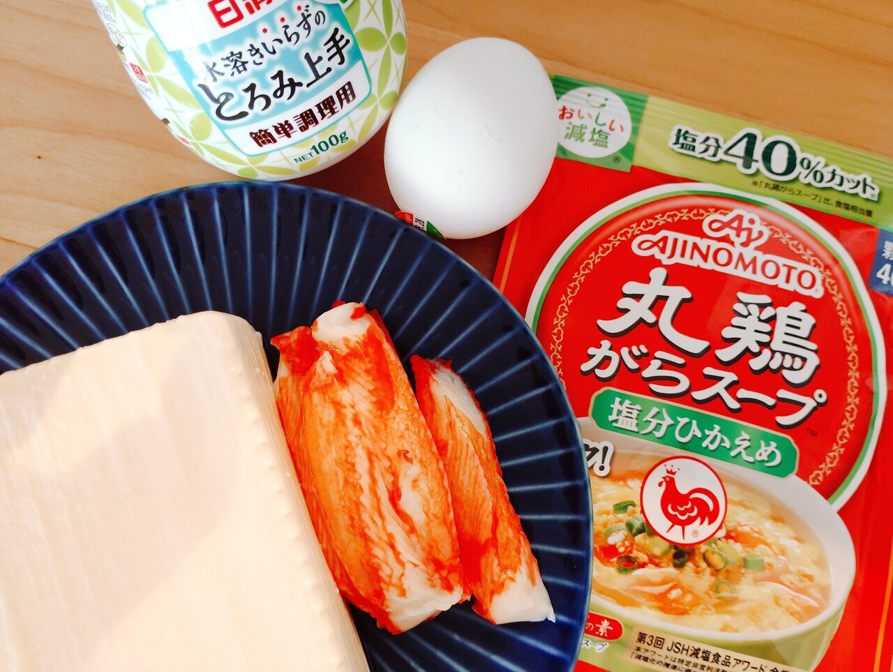 Ryuji's recipe lets you enjoy the taste of a specialty store with familiar ingredients. The "Chinese-style Tofu Crab Zosui" is a gentle dish that easily enters a tired body. Instead of rice, I used tofu to create a congee that can also be a diet meal.