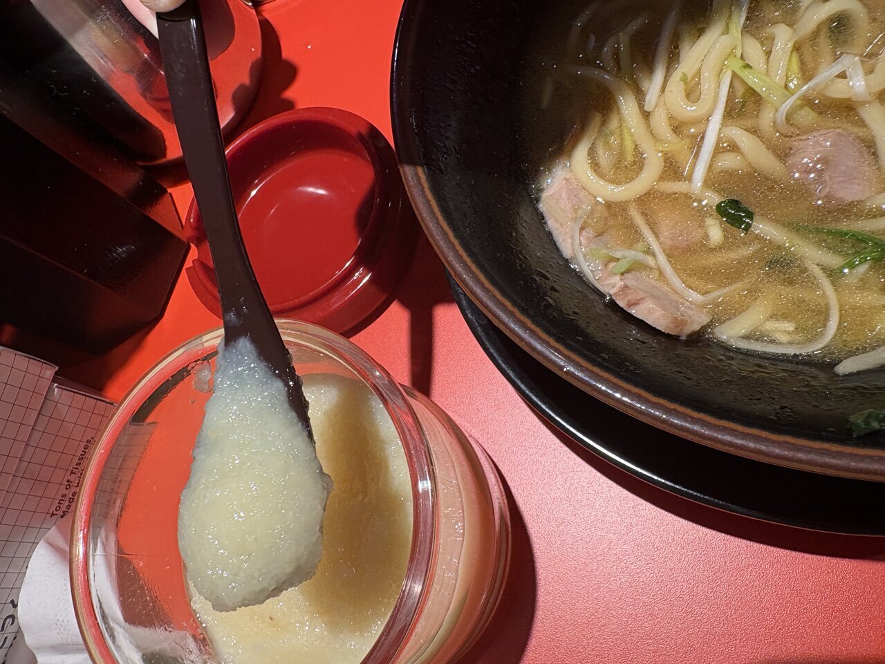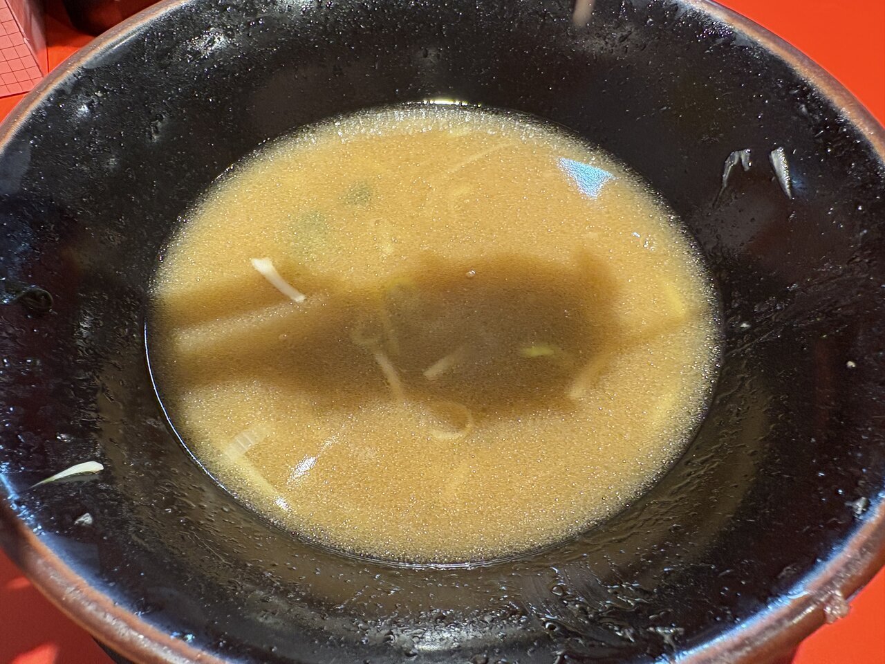 Adding a little garlic from the table halfway through completely transforms the impression of the soup. A depth of richness rises up, significantly enhancing the appetite. The layered changes in flavor as it reaches the end is a unique pleasure of this bowl.
