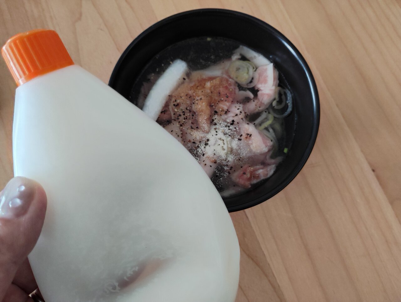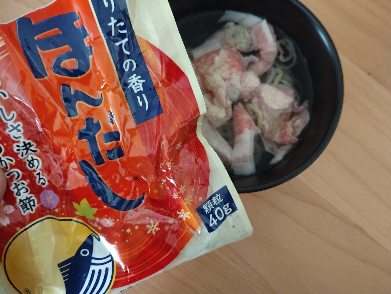 When I asked my husband, "What do you find delicious about it?" he just said "It's good," so I decided to taste it properly myself. First of all, the depth of flavor is quite addictive. The richness from the pork belly, the aroma of chicken bones, kelp, and the seafood notes from Hondashi blend together in perfect harmony, making it truly taste like something you'd eat at a restaurant.