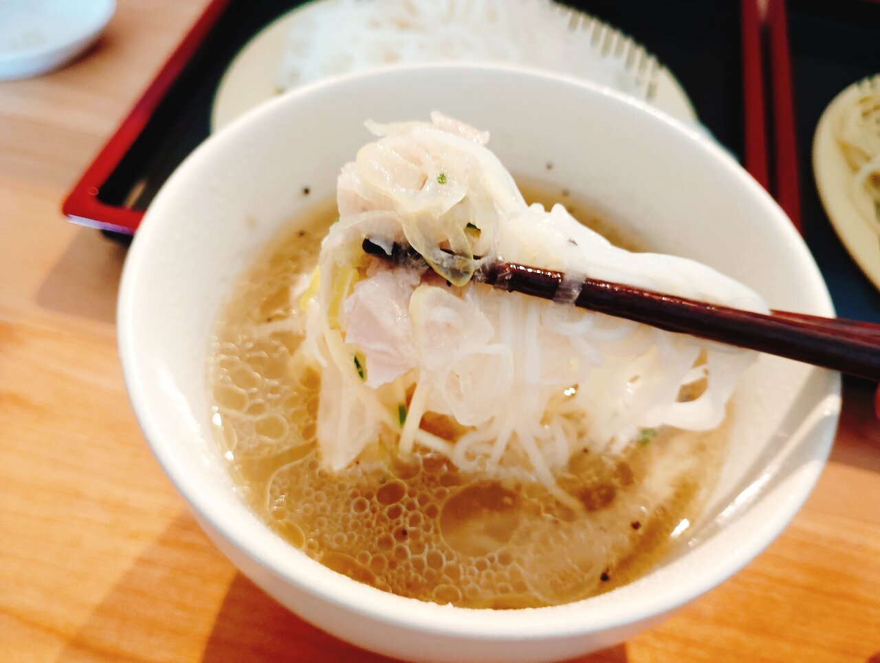 Ryuuji's "Negi Shio Buta Tsuke Somen" is complete. My husband, who loves somen more than I do, tasted it first. He usually has a picky palate, but he couldn't help but exclaim, "Wow! This is delicious!"