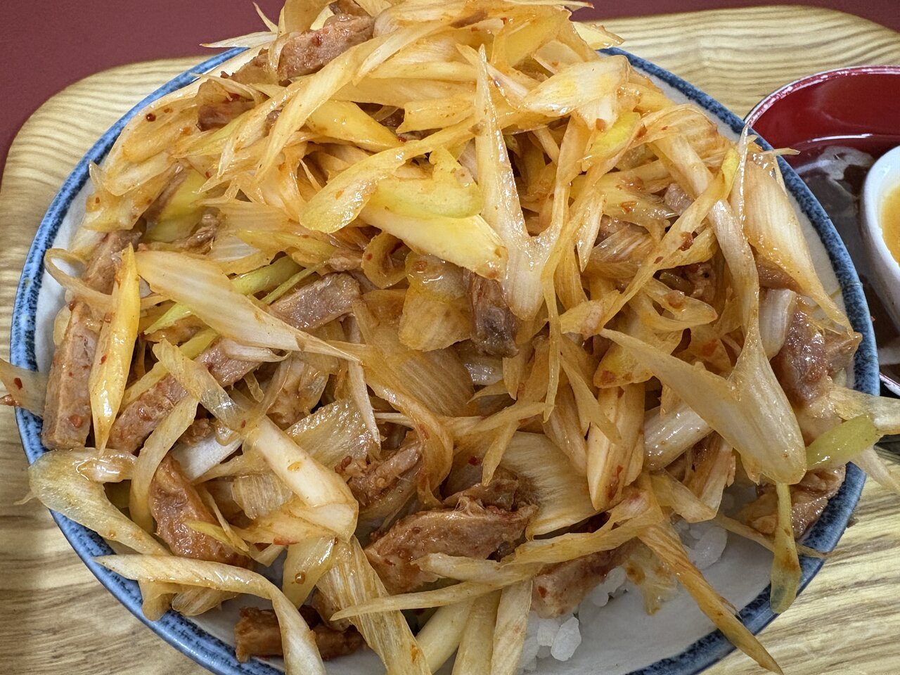 Inside the bowl, there was a mountain of white green onions and thinly sliced chashu that looked like it would spill over. The green onions had a pleasantly crunchy texture, perfectly coated with a doubanjiang-based sauce. A hint of spicy flavor added an accent, making it likely that even those who are not keen on spicy food could enjoy it.