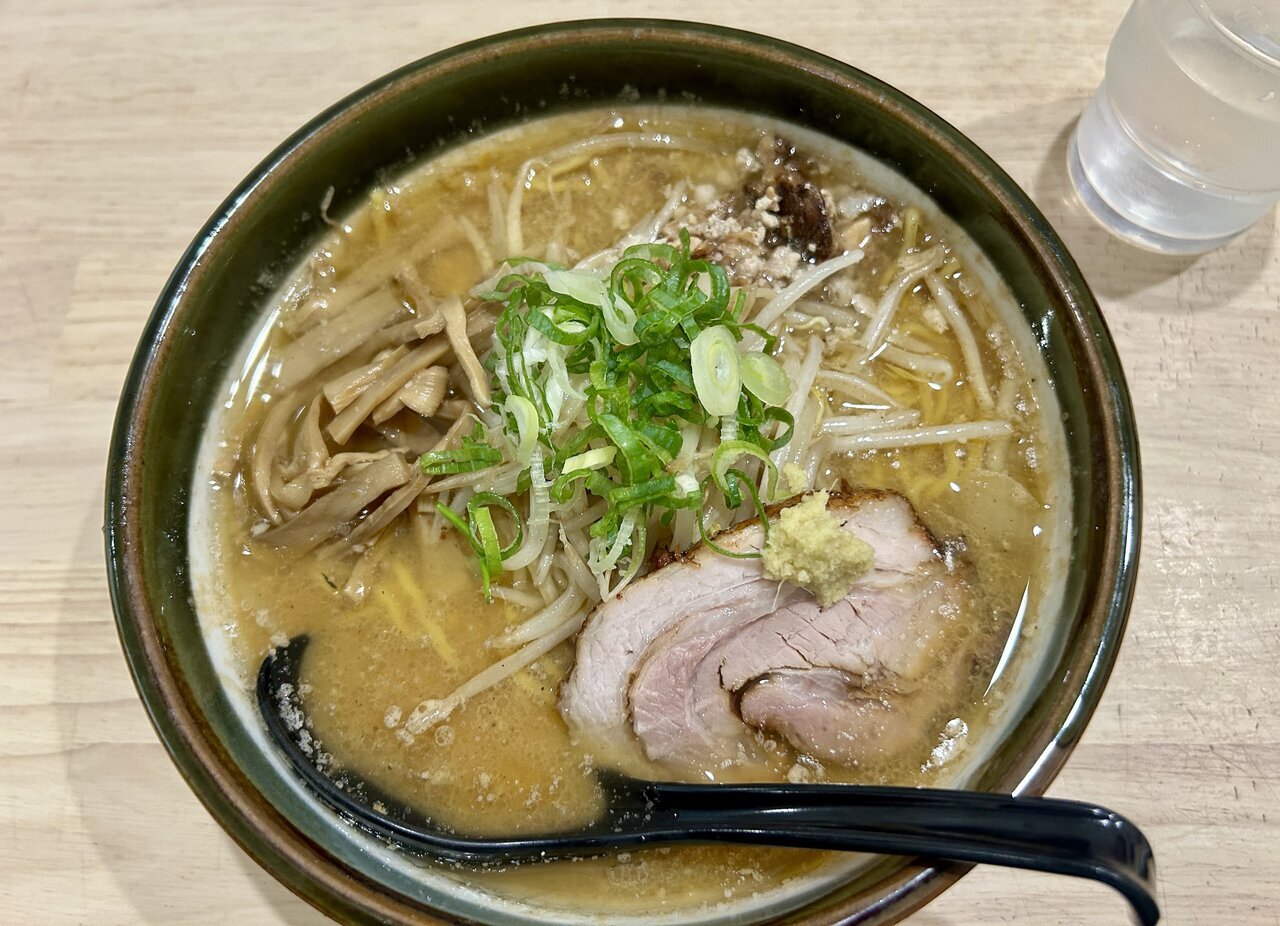 First, I took a sip of that soup. Whoa!? I couldn’t help but widen my eyes; the punchy flavor of miso hit me all at once. It was so rich that I ended up drinking about half a glass of water. I briefly felt anxious, wondering, "Can I finish this?" but the more I ate, the more addictive that rich, flavorful punch became.
