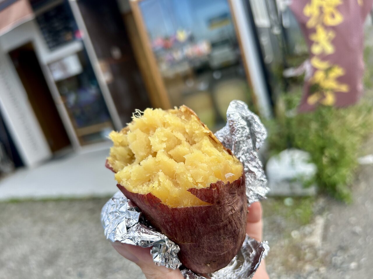 When I broke it in half, the inside was a bright yellow with a relatively smooth texture. When I tasted it, the flavor of traditional baked sweet potatoes spread across my palate. I thought to myself, "I prefer baked sweet potatoes that are sticky and full of syrup," but this simple and fluffy type allows you to enjoy the true taste of sweet potatoes directly!
